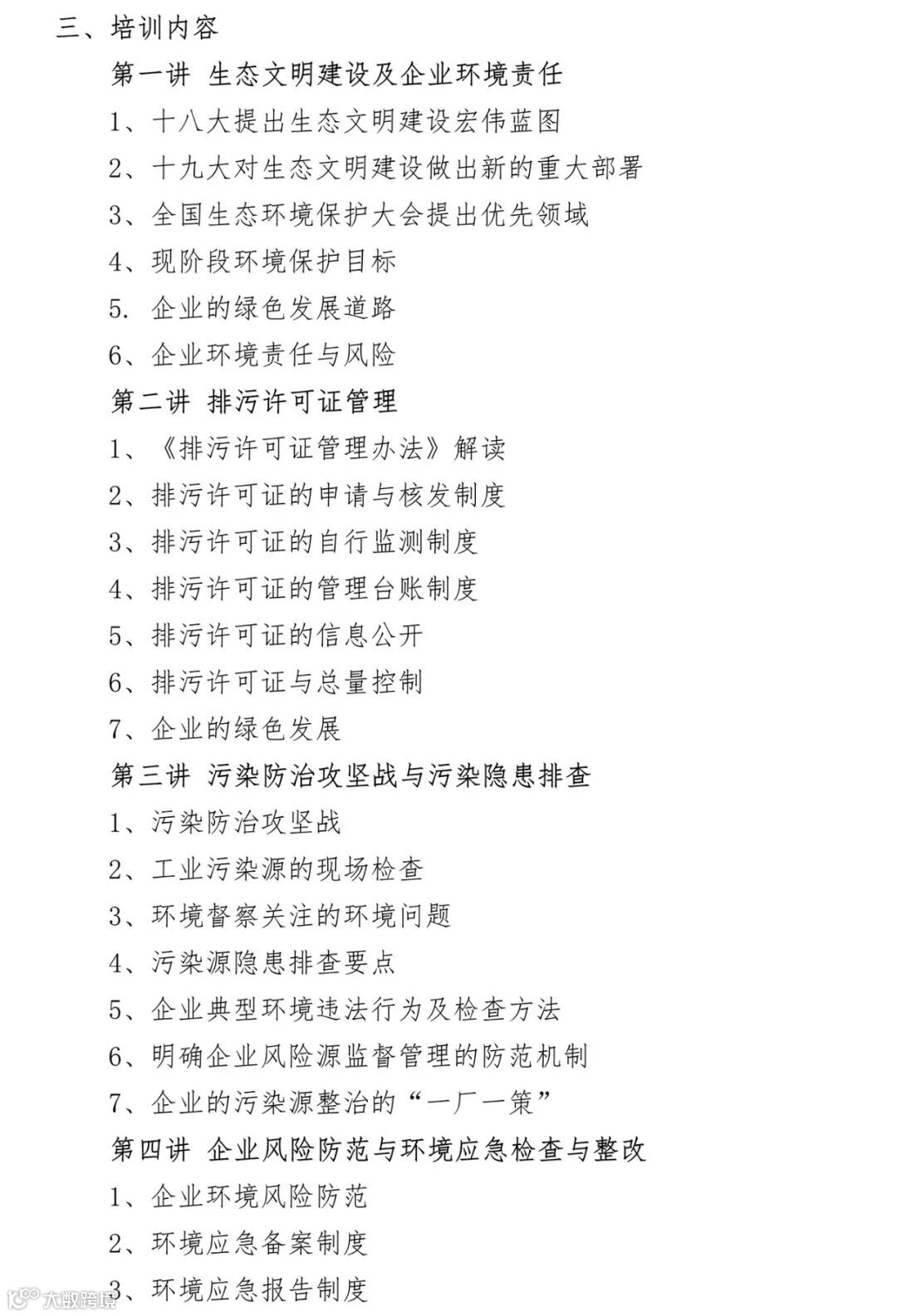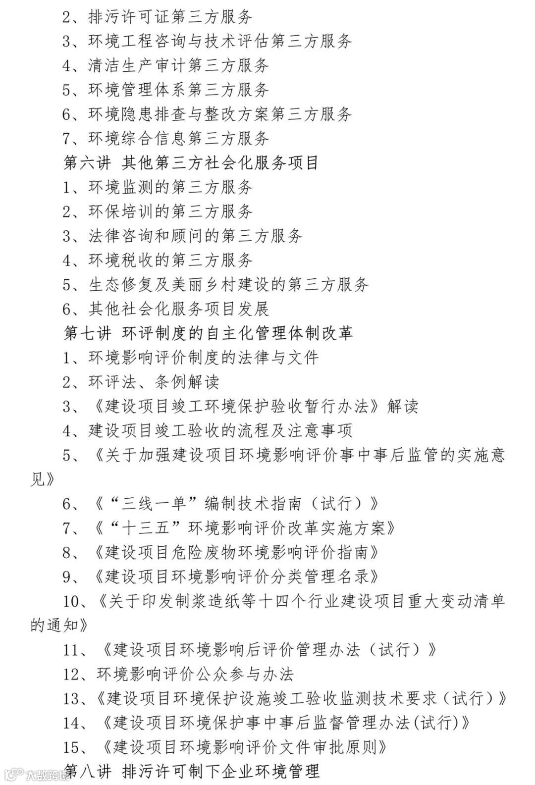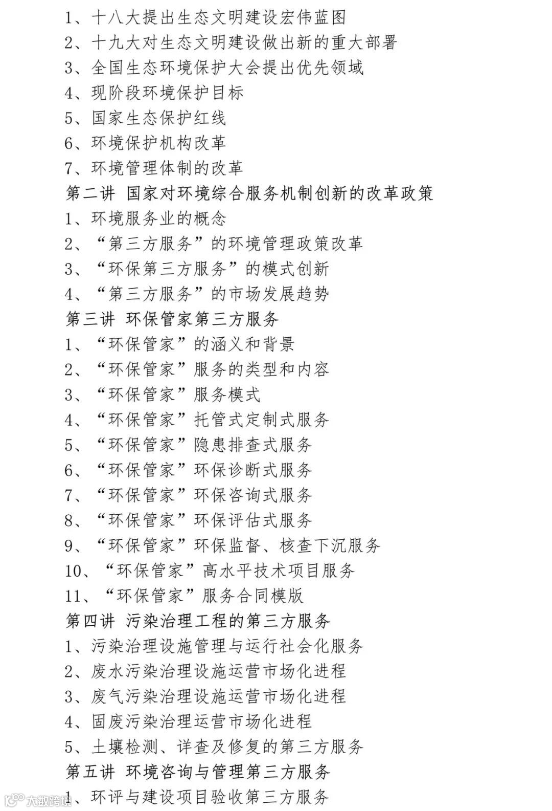 ——️针对第三方环保公司需求,实战培训。保证在培训期内,通过理论培训、实践操作,能快速独立开展工作,解决各环保公司人员培养的实际问题,内容包括环境综合服务的业务拓展与模式、企业隐患排查内容与排查方案思路设计、排污许可申请与核发实务、排污许可环境管理台账与执行报告实务,突发环境应急预案实务等;针对企业推出环保法律法规培训,企业隐患排查培训与指导、企业环保守法体系建立与指导、企业环保管理体系的建立与指导、企业环保工作管理要点实务、企业环保工作开展思路拓展、排污许可环境管理台账与执行报告实务、第三方环保公司的选择、洽谈及商务技巧培训等,涉及实操内容保证教会。我们给的是理念,引领的是方向,教的是经验。让沉淀的价值发挥更大的价值!