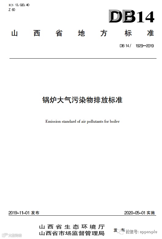发布《锅炉大气污染物排放标准》 (DB14/1929-2019)全文