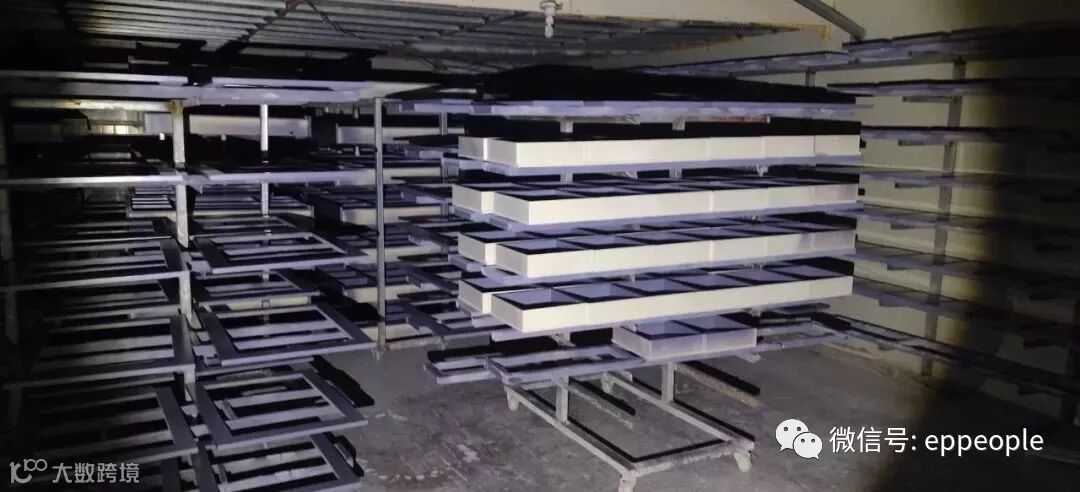 晾晒车间内,浴柜配件的油漆还没有干。