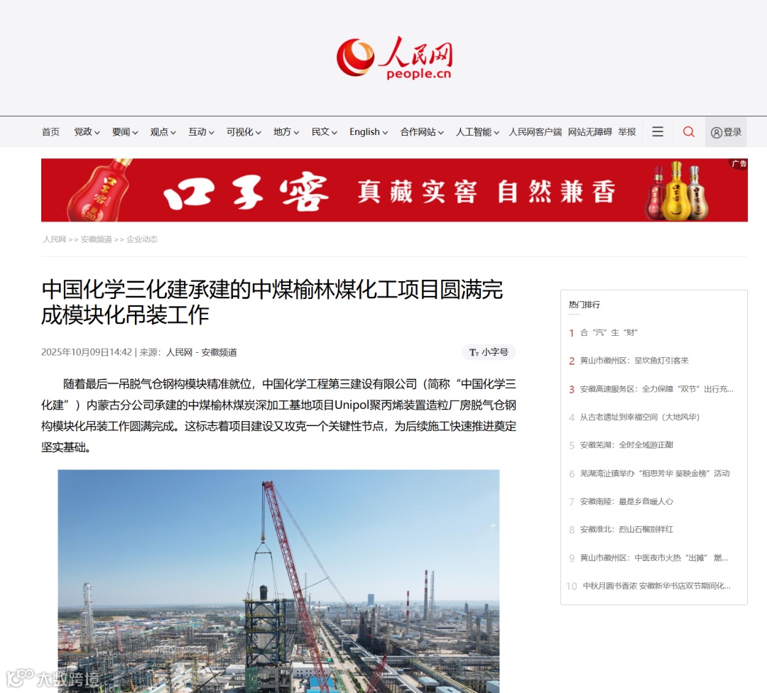 新闻梗概:中国化学工程三化建内蒙古分公司承建的中煤榆林发炭深加工基地项目Unipol聚丙烤装置造粒厂房貌气仓钢枸模块化吊装工作圆满完成,标志着项目建设在此攻克一个关键性节点,为后续工作快速推进奠定坚实基础。