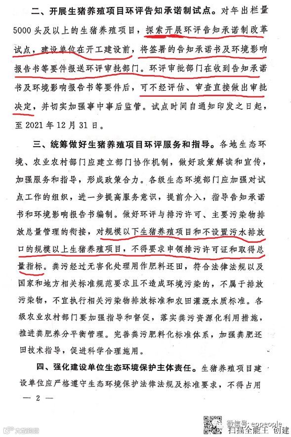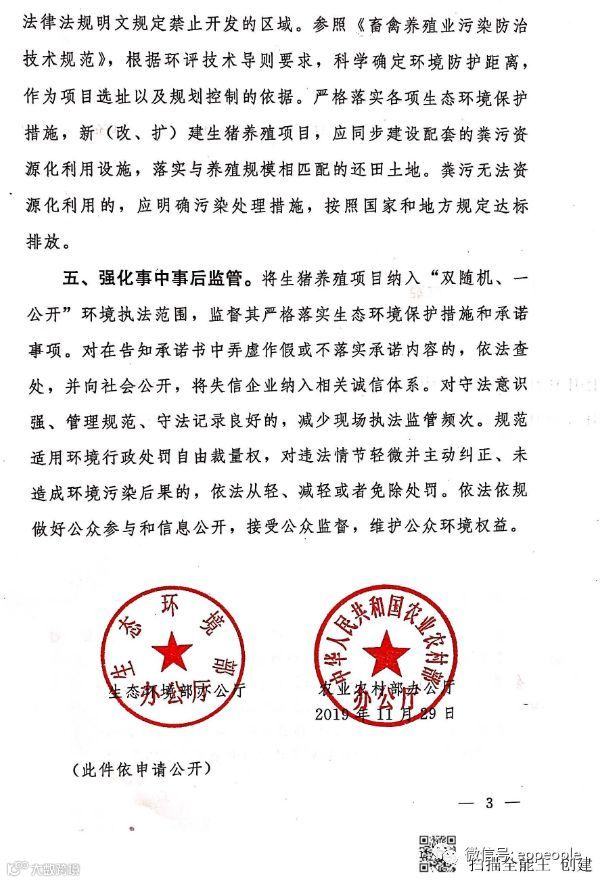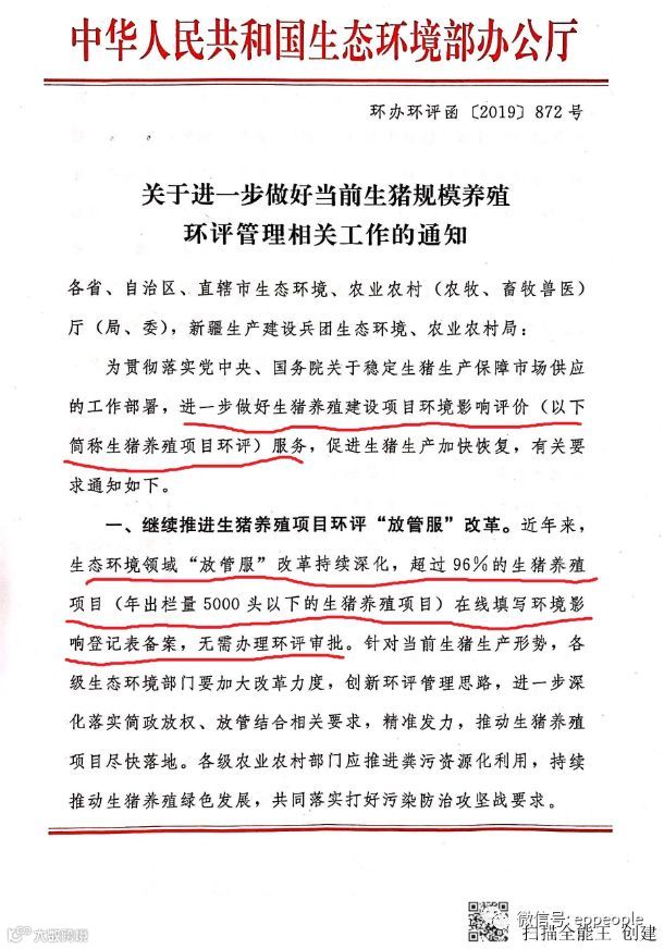 环境部农业部联合发文:生猪养殖项目超过96%无需环评审批,规模以下的不得要求申领排污许可证和申请总量
