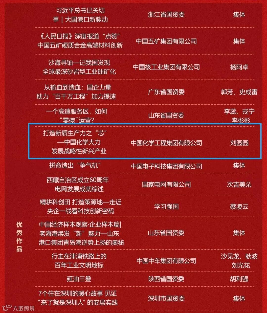 《打造新质生产力之“芯”——中国化学大力发展战略性新兴产业》一文发布于2024年9月18日《科技日报》头版头条,深入报道了中国化学工程聚焦科技创新,在高端新材料、绿色环保等战略性新兴产业领域的前瞻布局与丰硕成果,生动诠释了企业以科技创新驱动产业升级,积极培育和发展新质生产力的核心实践与担当,获得了评委与读者的广泛好评;短视频 《逐梦安哥拉:William张的洋答卷》以细腻的镜头语言,讲述了中国化学工程海外项目建设者与当地员工携手共进、共同成长的动人故事,真实反映了企业在践行“一带一路”倡议中,不仅建设精品工程,更致力于促进文化交流、履行社会责任的良好企业公民形象,成为增进中外友谊的生动注脚。