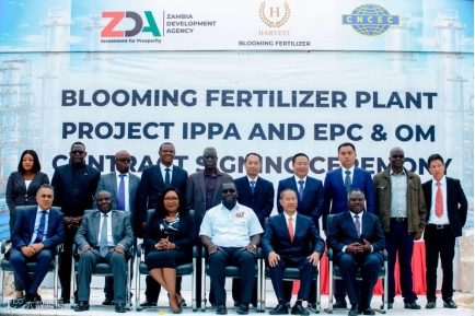 2024年,中国化学赛鼎公司与赞比亚Blooming Chemical Industry公司签署赞比亚30万吨/年合成氨、50万吨/年尿素项目。项目位于赞比亚锡亚翁加Siamahka村Butele区,建设内容包含30万吨合成氨,52万吨尿素工艺生产装置。建成后将为当地创造大量就业岗位,也将极大促进赞比亚乃至周边国家农业及煤化工产业的发展,为区域发展再添动力,为中赞友谊再筑基石。
