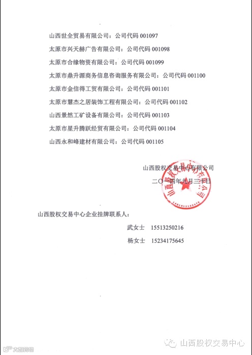 关于第十一批六十四家企业在山西股权交易中心挂牌展示信息公告如下: