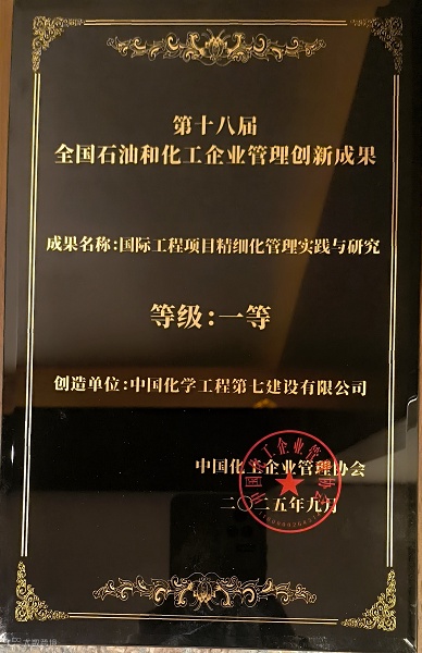 近日,七化建管理成果《国际工程项目精细化管理实践与研究》,凭借在国际工程领域的创新性、实践性与实效性,获评第十八届全国石油和化工企业管理创新成果一等奖,标志着七化建管理创新能力获得行业权威认可。