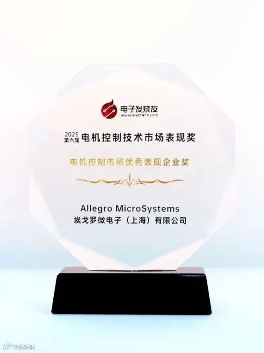 电子发烧友“2025年第十三届电机控制先进技术研讨会”:Allegro荣获“电机控制市场优秀表现企业奖”。