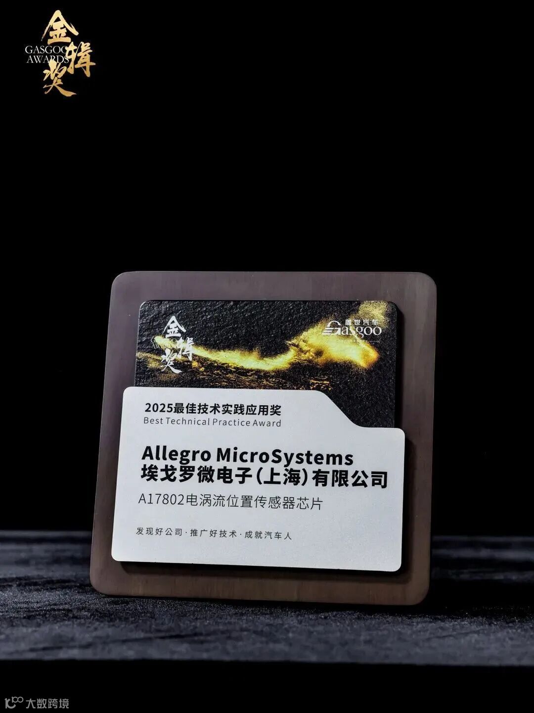 盖世汽车2025第七届“金辑奖”:Allegro A17802电涡流位置传感器芯片获“最佳技术实践应用奖”。