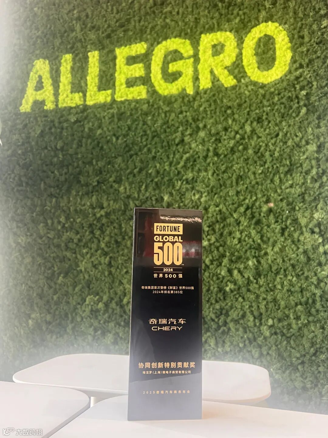 奇瑞汽车供应链生态圈年会:Allegro荣获“协同创新特别贡献奖”。