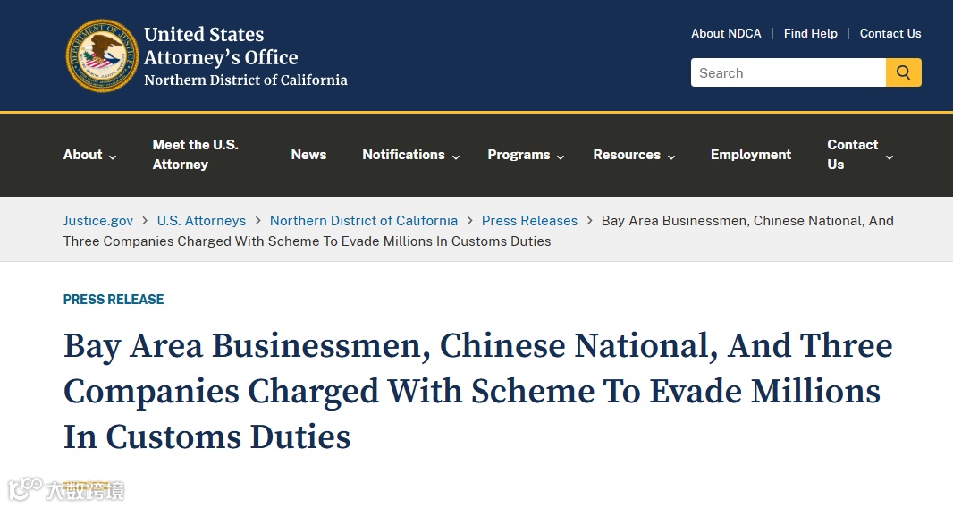 2025-12-30 讯 一起涉案金额高达1.09亿美元的跨境关税欺诈案近日引发广泛关注。美国加州联邦检察官办公室披露,联邦大陪审团已对三家企业及三名个人提起正式诉讼,其中包含一家深圳货运代理公司,涉案人员或面临最高20年监禁及超2.2亿美元罚款的严厉惩处。目前,主要涉案人员之一已被逮捕羁押,案件正推进司法审理程序。