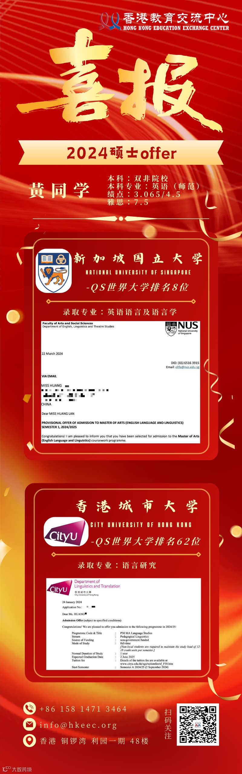 在整个申请过程中,我不可避免地遇到了挑战和压力,但老师们的鼓励和支持是我坚持下去的动力。他们让我明白,即使我的本科院校并非顶尖,只要我能明确地展示自己的优势、目标和潜力,我仍然有机会获得世界知名学府的认可。自主学习、实践经验和清晰的职业规划是成功申请的重要因素,而香港教育交流中心老师们的专业指导则是我申请成功的重要助力。