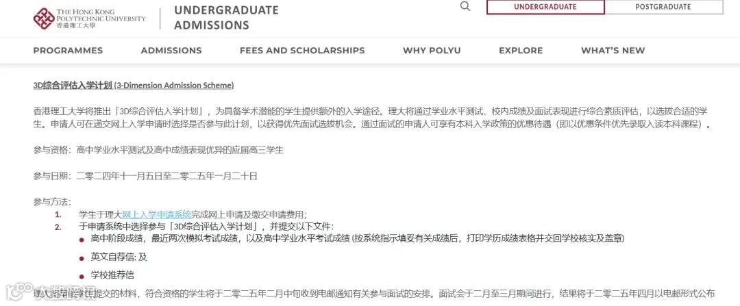 除了「3D综合评估入学计划」外,香港理工大学还推出了其他优惠入学政策,如德艺计划等,符合条件的同学也可以申请!想了解更详细的可以点此复习。