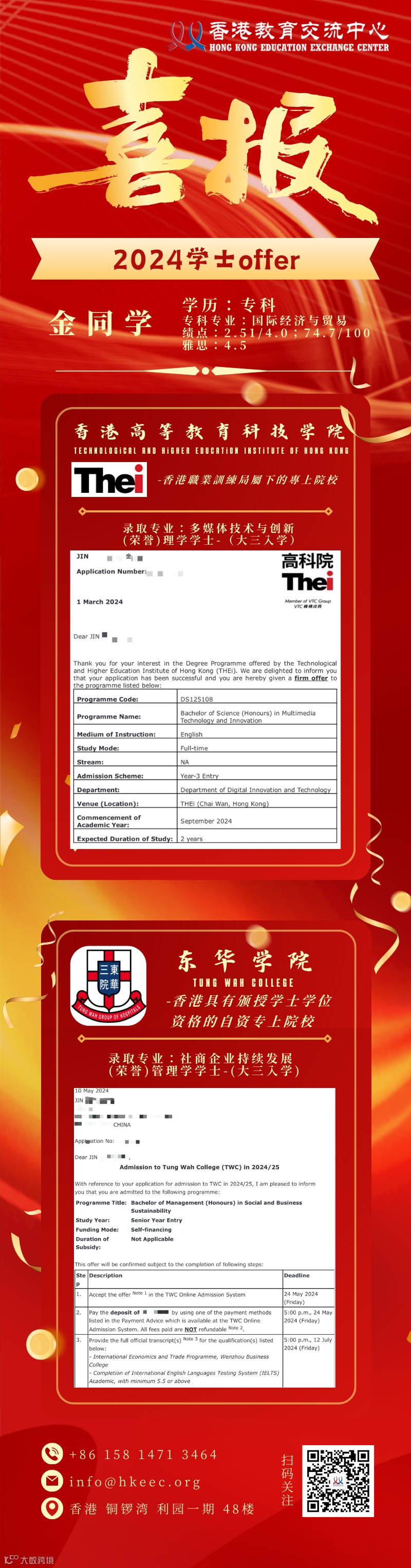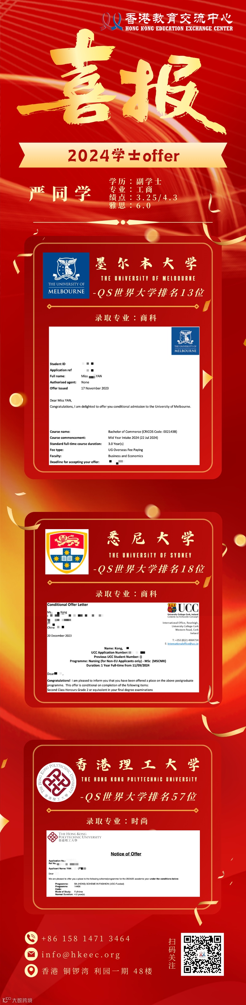香港高校的offer雨来喽,香港教育交流中心的同学们成功获得香港名校的青睐。看看这些成功申请到香港高校的同学们都有哪些不凡的背景?他们是如何获取多个offer的呢?本期小编,来传授一下独家的录取秘籍!
