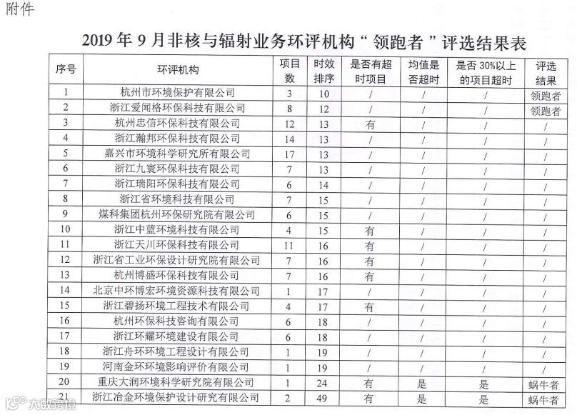关于对2019年9月环评机构“领跑者”和“蜗牛者”评选情况的通报