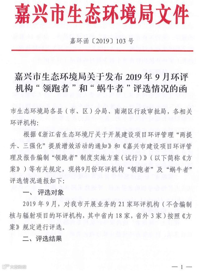嘉兴市生态环境局关于发布2019年9月环评机构“领跑者”和“蜗牛者”评选情况的函.pdf