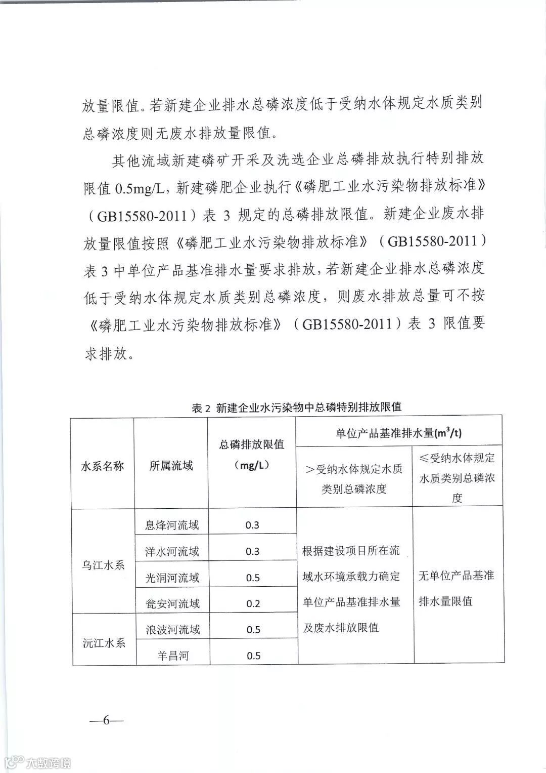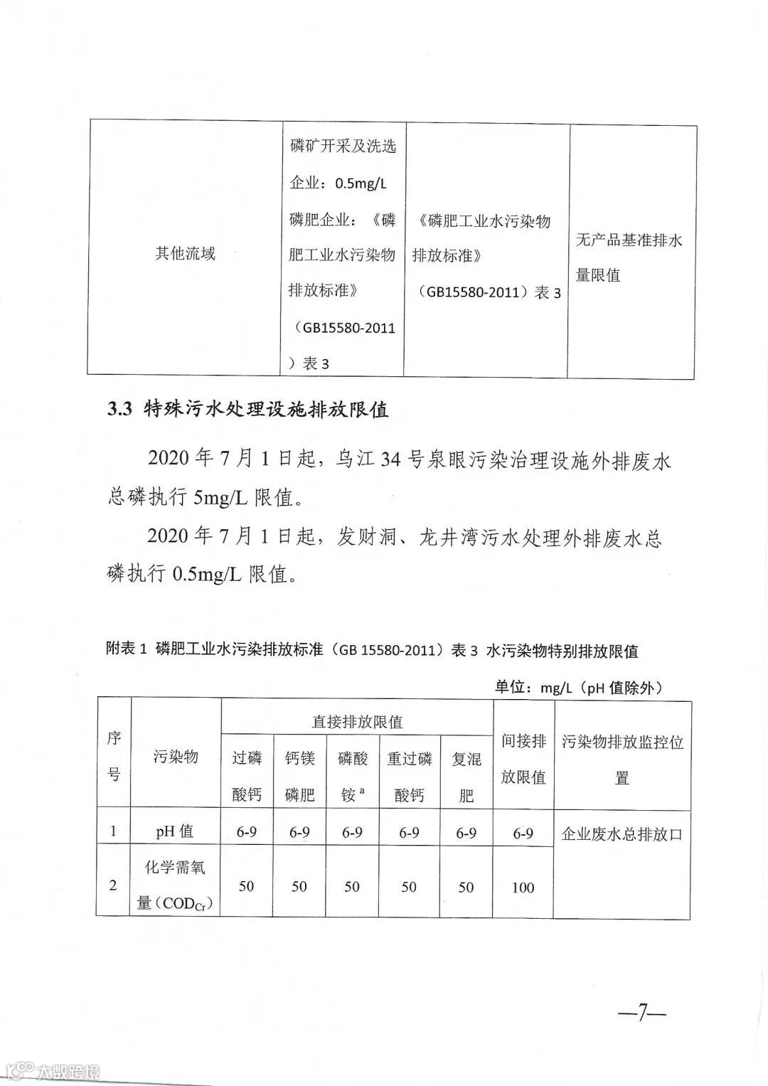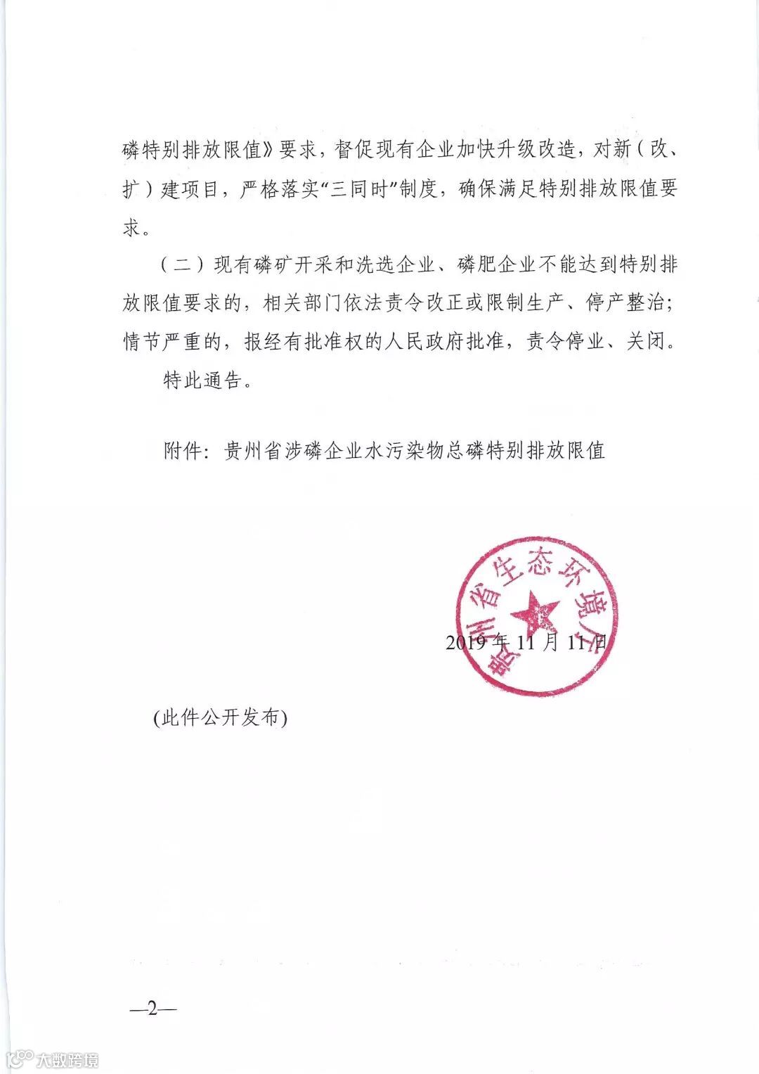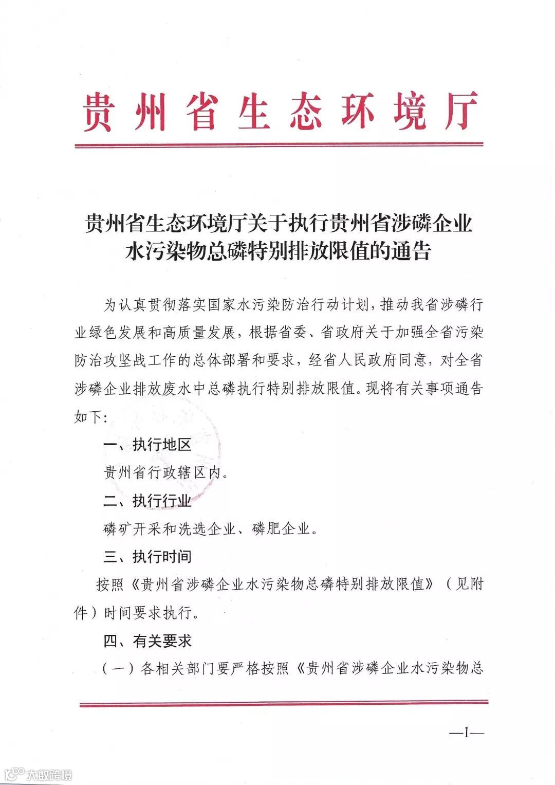 关于执行贵州省涉磷企业水污染物总磷特别排放限值的通告