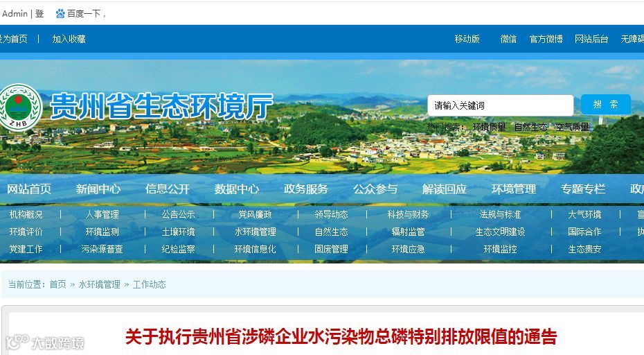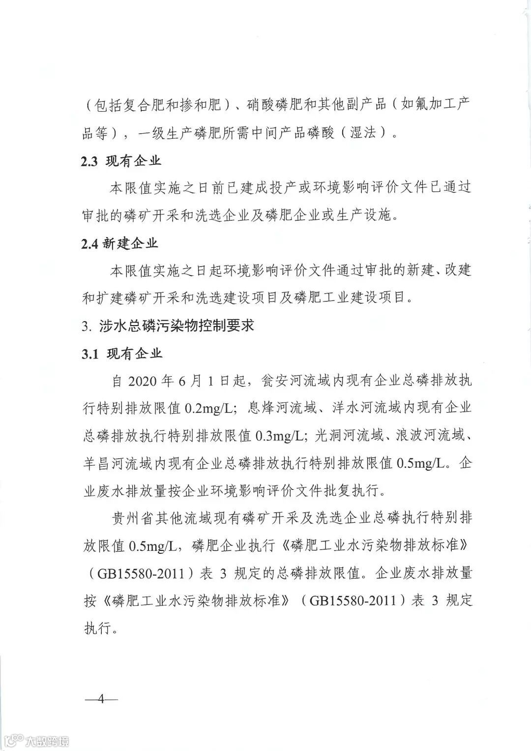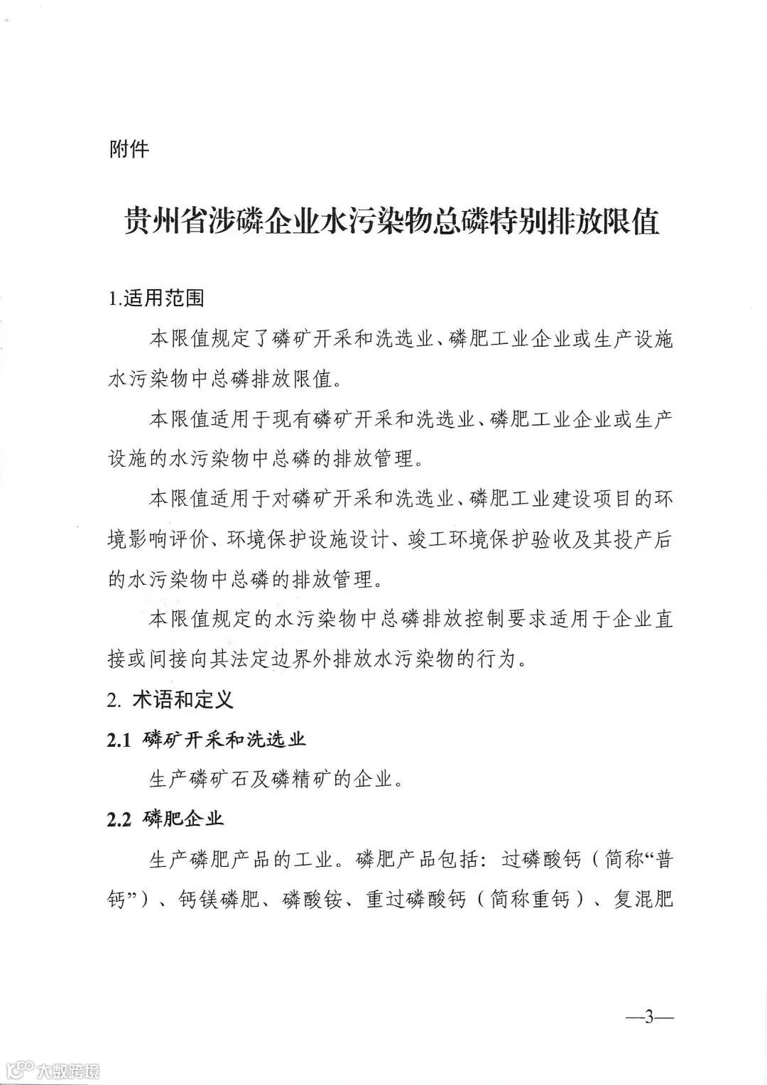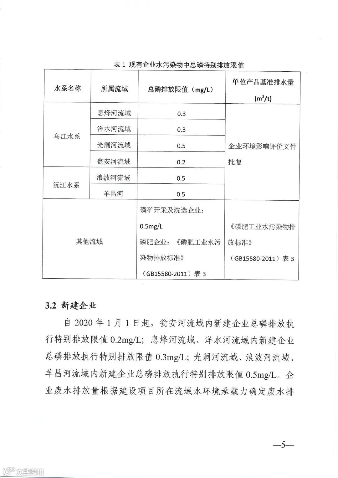 关于执行贵州省涉磷企业水污染物总磷特别排放限值的通告