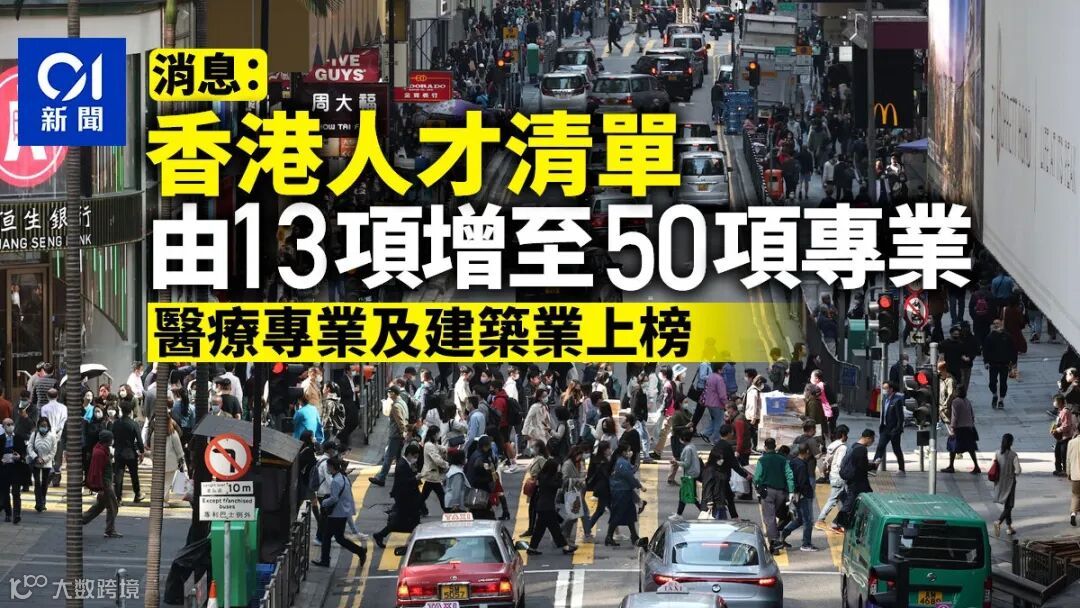报道称,不论中国大陆或海外,只要属于清单上列明的专才,都可成为人选。据悉,纳入清单的专业,仍需符合香港的注册制度。