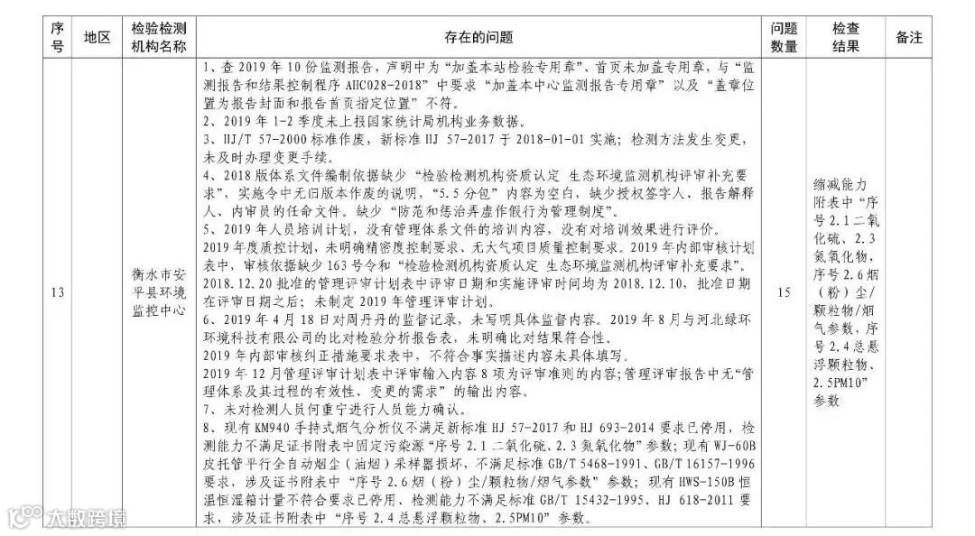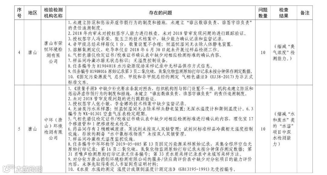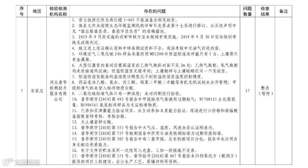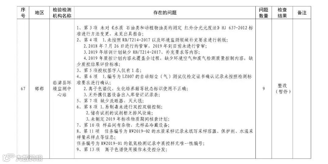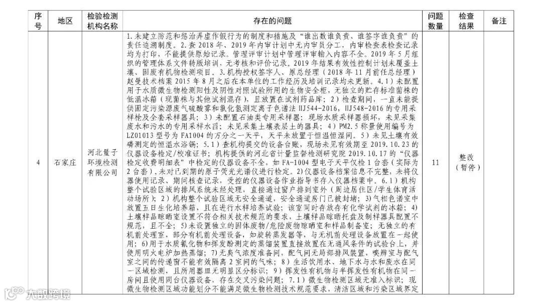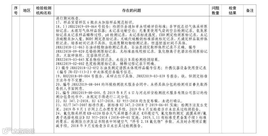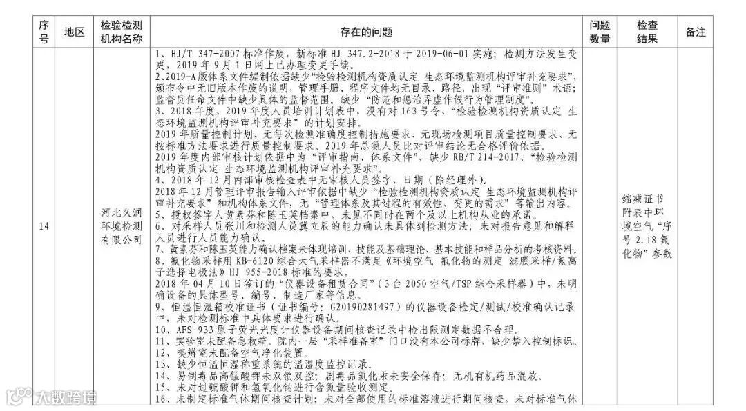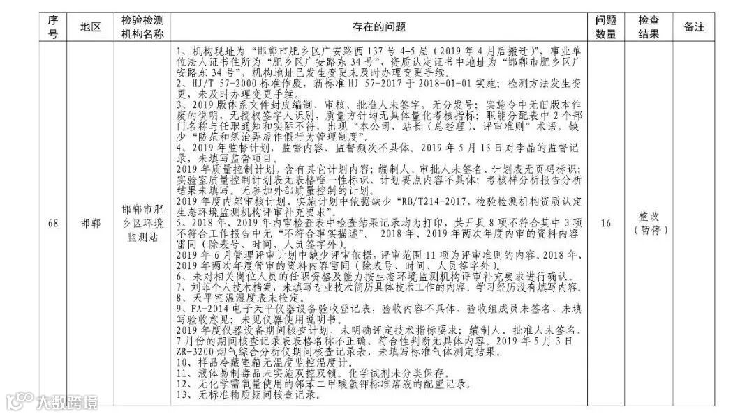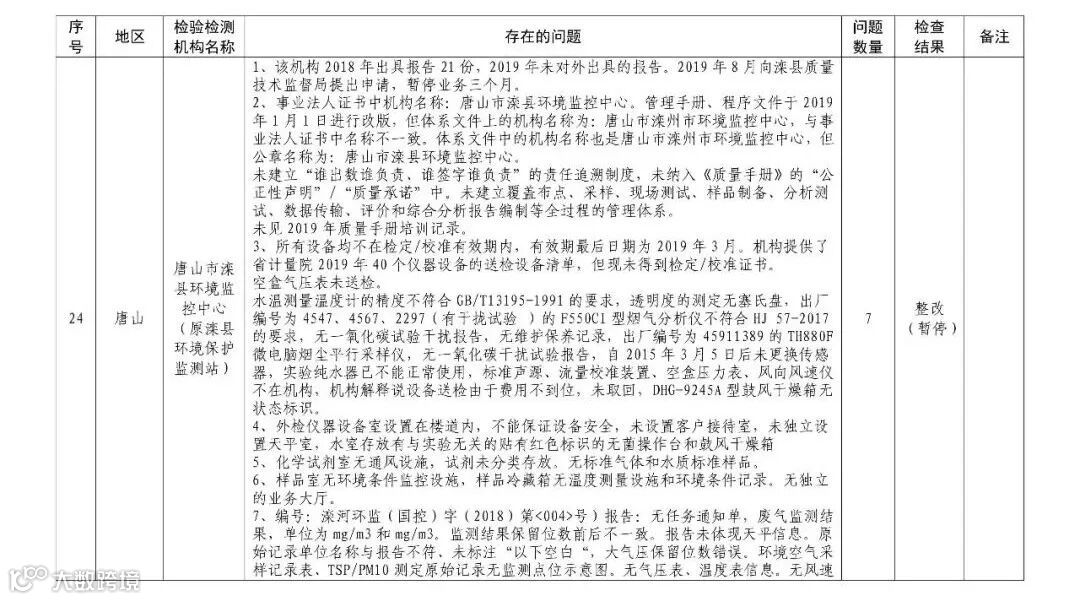 经检查,24家机构资质条件不满足资质认定能力要求,71家机构存在违规行为,13家机构现场部分能力不能持续满足资质认定要求,1家机构未主动参加京津冀能力验证项目考核,5家机构现场能力考核不合格。