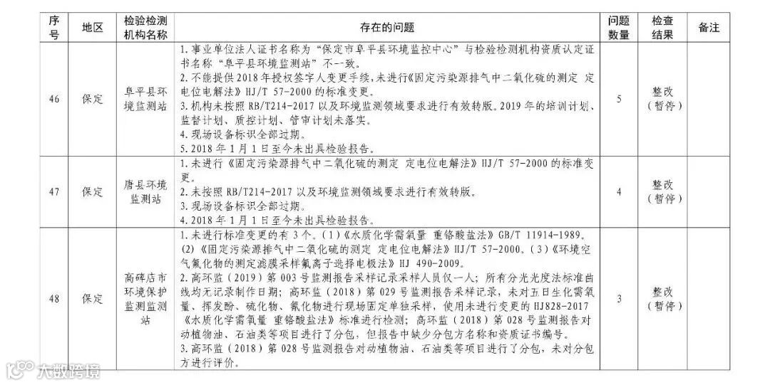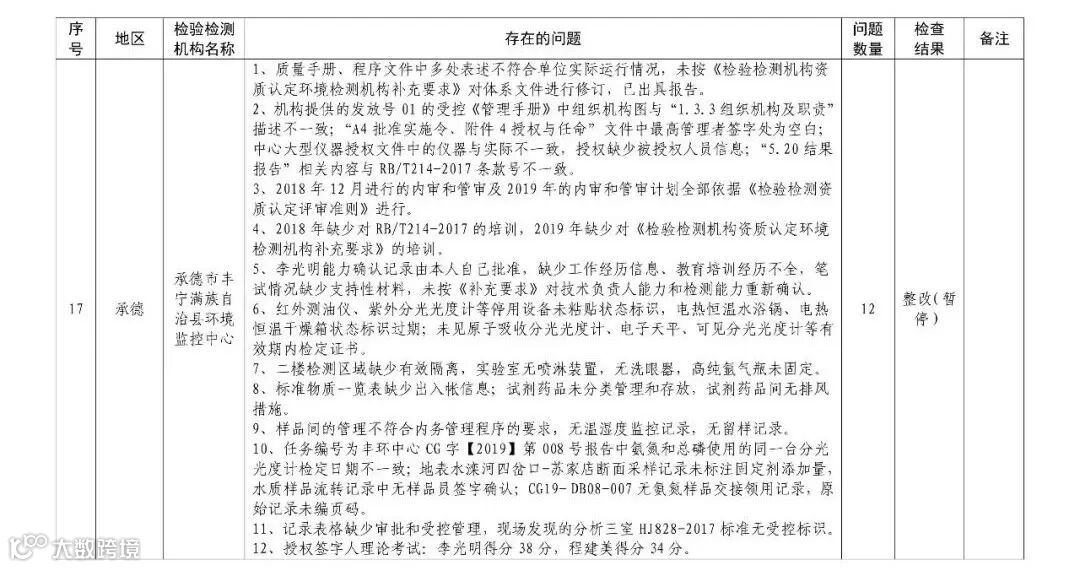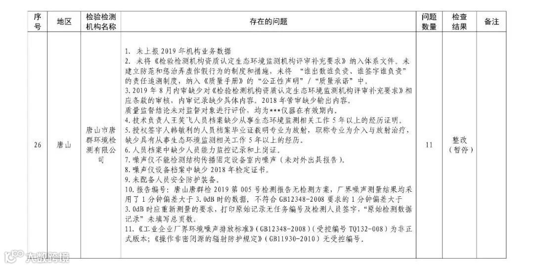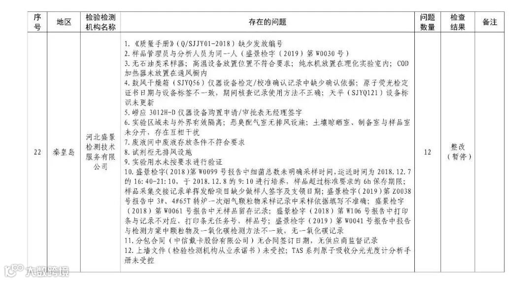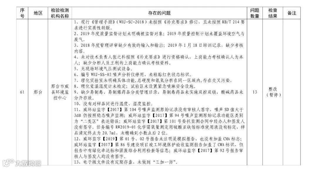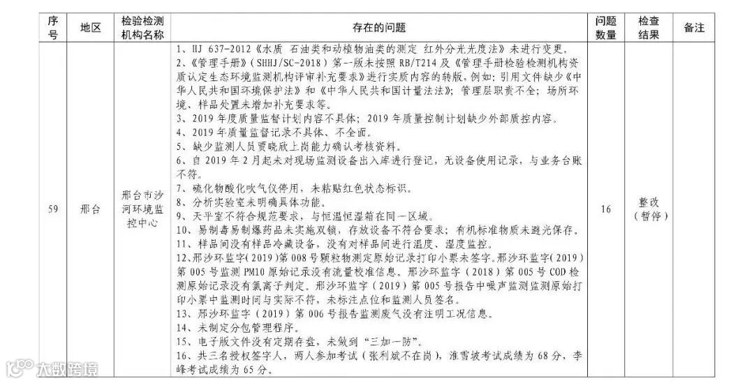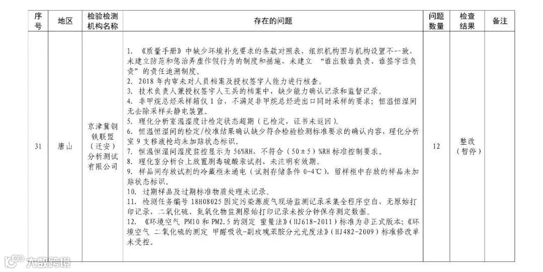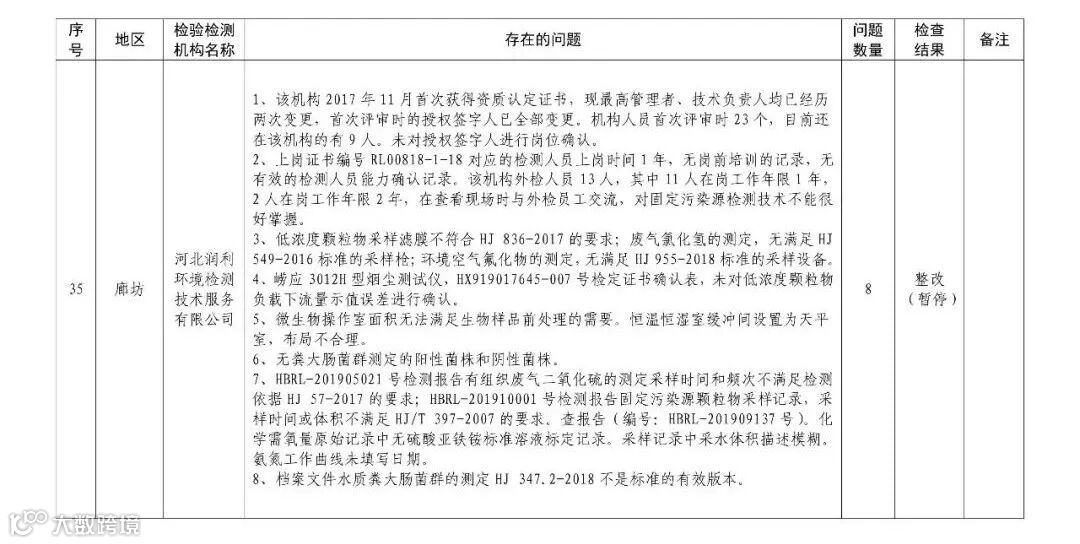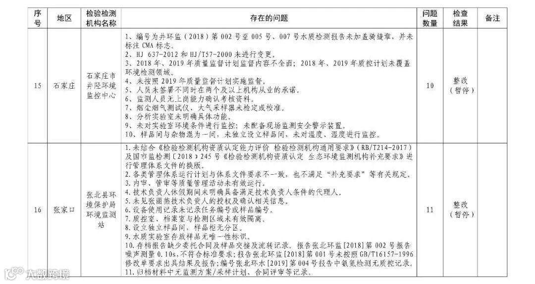 经检查,24家机构资质条件不满足资质认定能力要求,71家机构存在违规行为,13家机构现场部分能力不能持续满足资质认定要求,1家机构未主动参加京津冀能力验证项目考核,5家机构现场能力考核不合格。