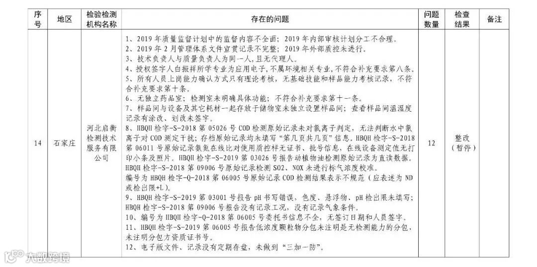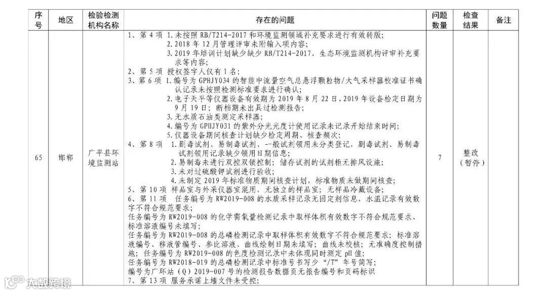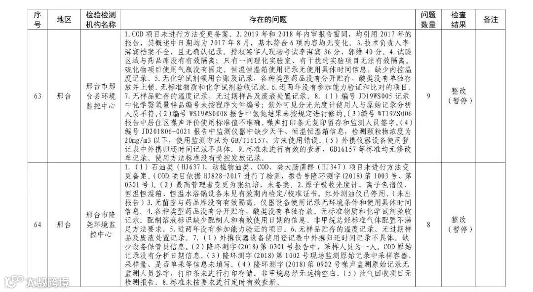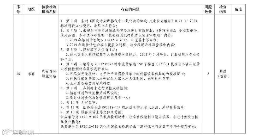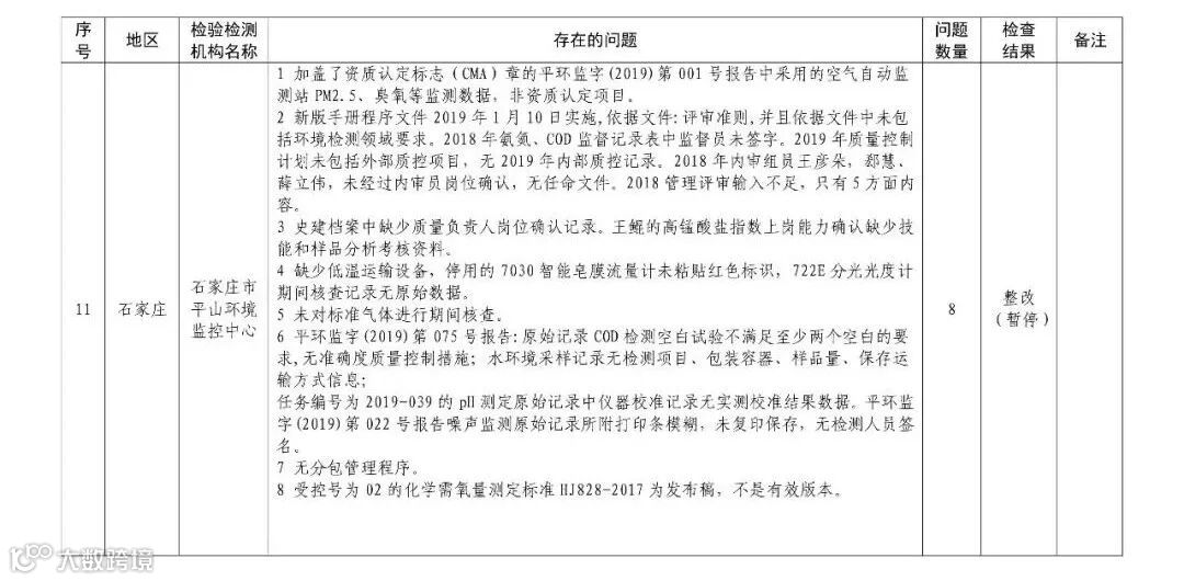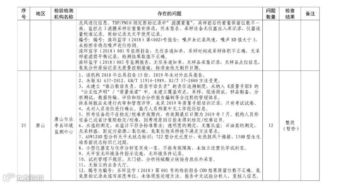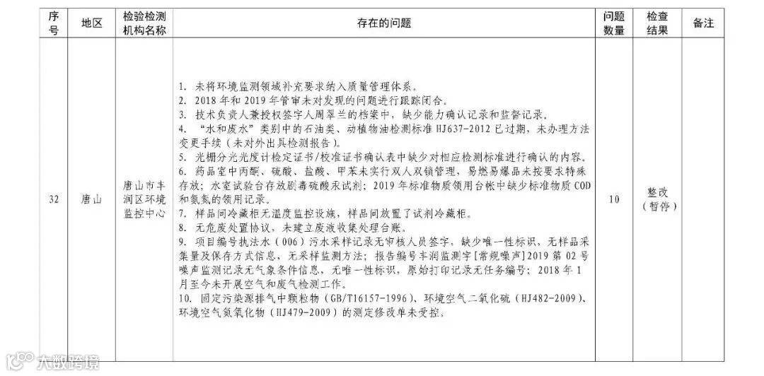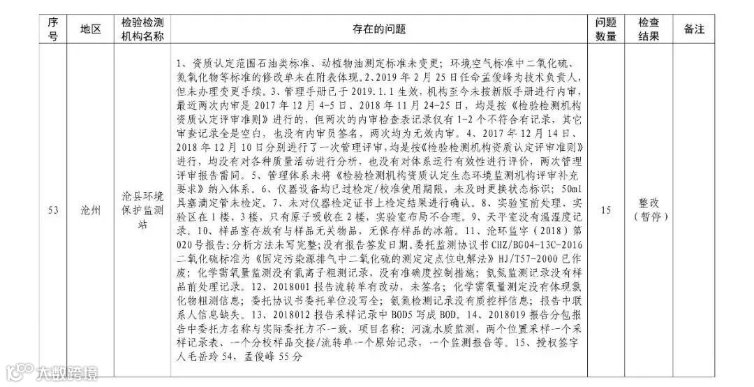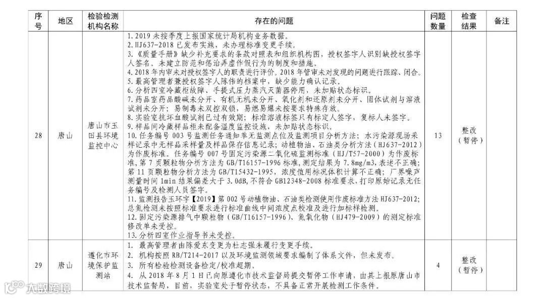 4.暂停5家部分能力的生态环境监测机构名单