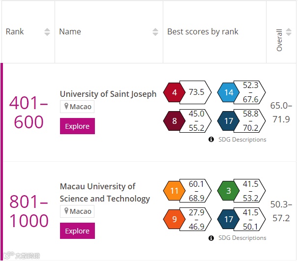 澳门地区跟去年一样,也是2所院校上榜!分别是圣若瑟大学和澳门科技大学,其中圣若瑟大学今年的排名则是与去年持平,依旧是401-600名,澳门科技大学为801-1000名。