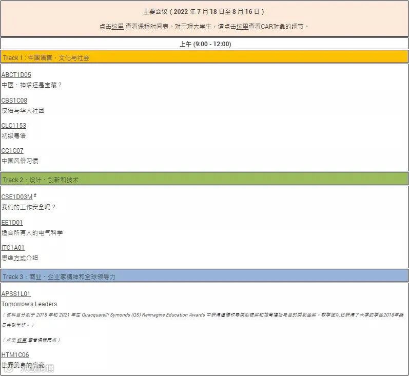 理大2022年国际暑期课程提供三大主题,共开设18个科目,最多可以选择修2个科目。