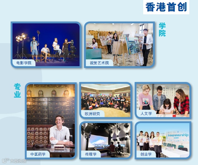 大学是一所文理型综合大学,辖下有七个学院,包括文学院、工商管理学院、中医药学院、传理学院、创意艺术学院、理学院及社会科学院,本科生及研究生超过一万五千人。