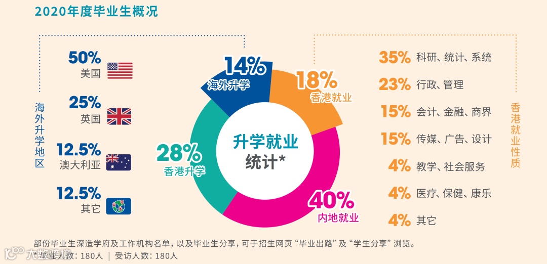 参考官方给到的2020年毕业内地生数据,超过四成留港或到海外继续升学深造,另外约两成留港工作,投身社会。