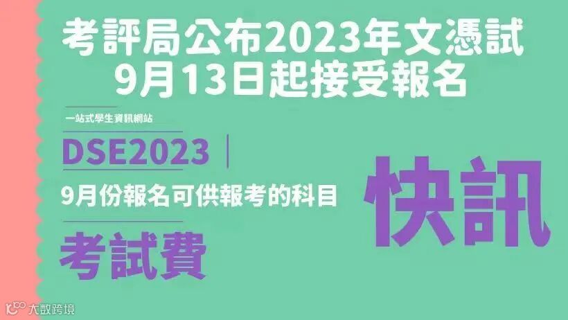 近期,2023年的DSE报名通道正式启动,即9月13日到10月6日,请各位注意报名时间!