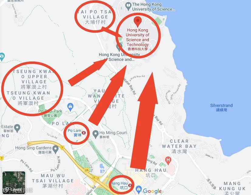 住在这几个地区需要坐小巴或新巴才能到达科大,通勤时间20分钟到40分钟不等。