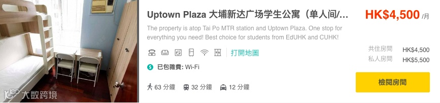 教育大学位于新界大埔,但是学校的位置离地铁站有点距离,而且学校附近房源不多,所以同学们一般都会在大埔墟附近选择房源。