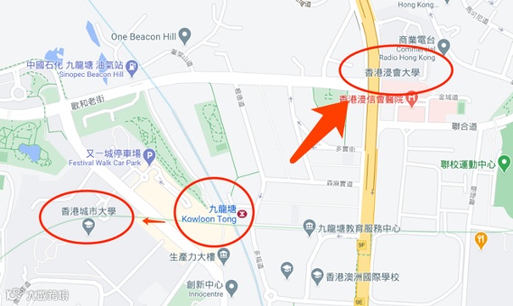 城大和浸会是“邻居”,而且东铁线九龙塘站恰恰在它们中间,无论是城大还是浸会的同学,都可以在九龙塘站下车。
