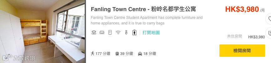这几个区域搭乘东铁线都十分方便,因此许多城大和浸会的同学会考虑住在这些地方。