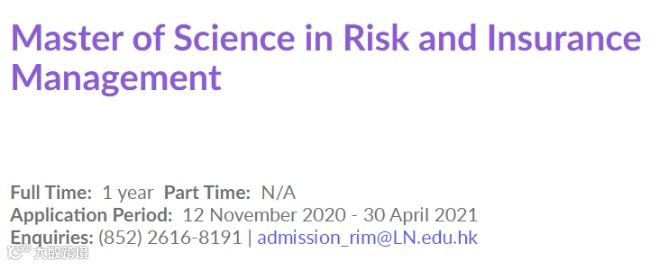 岭南大学是香港历史最悠久的高等学府,被评为"亚洲十大博雅学院"之一,岭南大学研究生院是香港资源最丰富的研究生院之一,其推出的风险及保险管理理学硕士课程(MSc in Risk and Insurance Management)是一个注重专业实践的课程,旨在让学生建立对风险管理与保险业的深入认知,是岭南大学研究生院的特色课程之一。