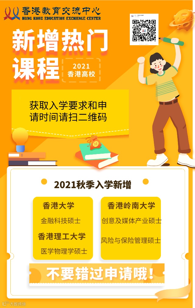 这个学年,香港的高校新增了不少2021年秋季入学的专业课程。前有香港大学新开的Master of Finance in Financial Technology(金融科技硕士);后有香港理工大学新开的MSc in Medical Physics(医学物理学硕士)。