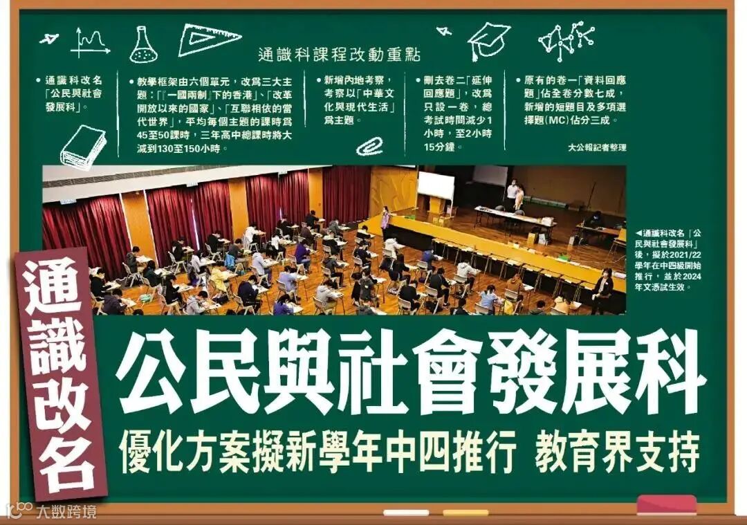 DSE的通识科目主要考察学生对于香港时事热点的看法,这对很多在内地读书的学生来说有点难。但调整后,教育局对公民与社会发展科的课时做了消减,(从原来的250课时减少到150个课时)、最重要的是新增内地考察,以写报告代考试。