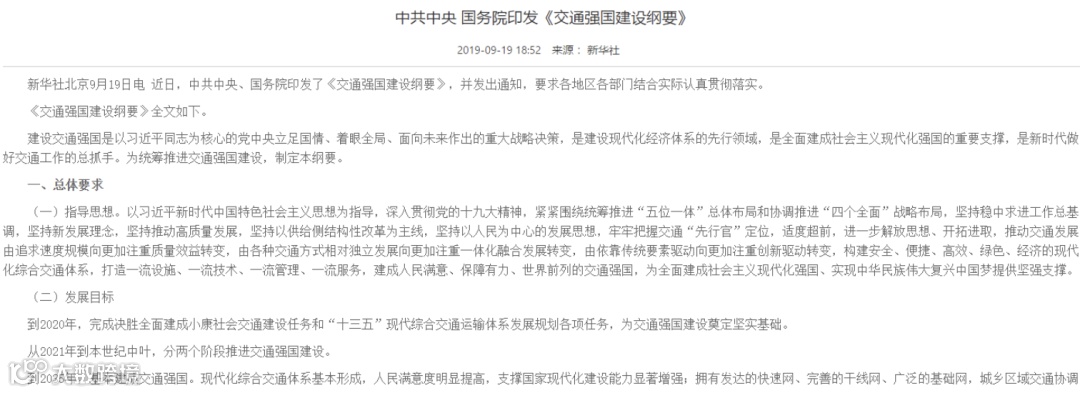在2019年的《交通强国建设》中,国家提出要建设交通强国,形成现代化综合交通体系,基本实现「全国123出行交通圈」。