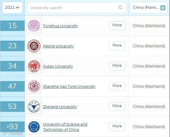 中国香港地区则有香港大学、香港科技大学、香港中文大学、香港城市大学、香港理工大学上榜。其余多为欧美国家,尤其是英、美几乎占满前十名。