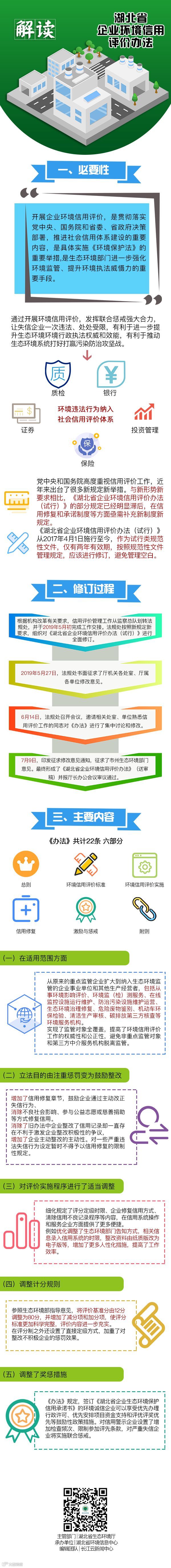 2019年10月25日,湖北省生态环境厅印发实施了《湖北省企业环境信用评价办法》。为便于各级生态环境部门、有关企业和生产经营者更好地理解相关内容,切实做好该规范性文件的贯彻实施工作,现在由小编带您一图读懂↓↓↓