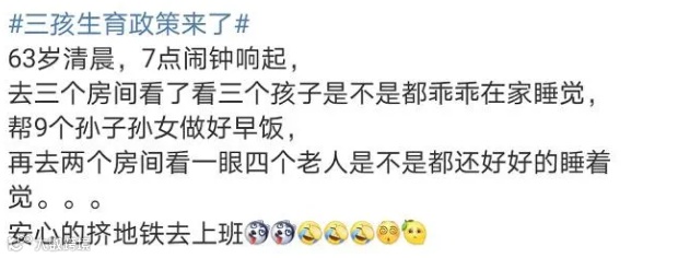 三孩政策一经发布,就在网络上引发了激烈的讨论。部分网友对政策表示了不看好,甚至编起了段子: