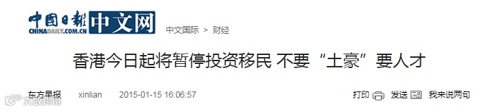 2003年10月27日,香港政府推出投资移民。香港投资移民,即资本投资者入境计划,目的是让那些把资金带来香港,但不在香港参与经营业务的人士到香港定居。(后于2015年暂停)