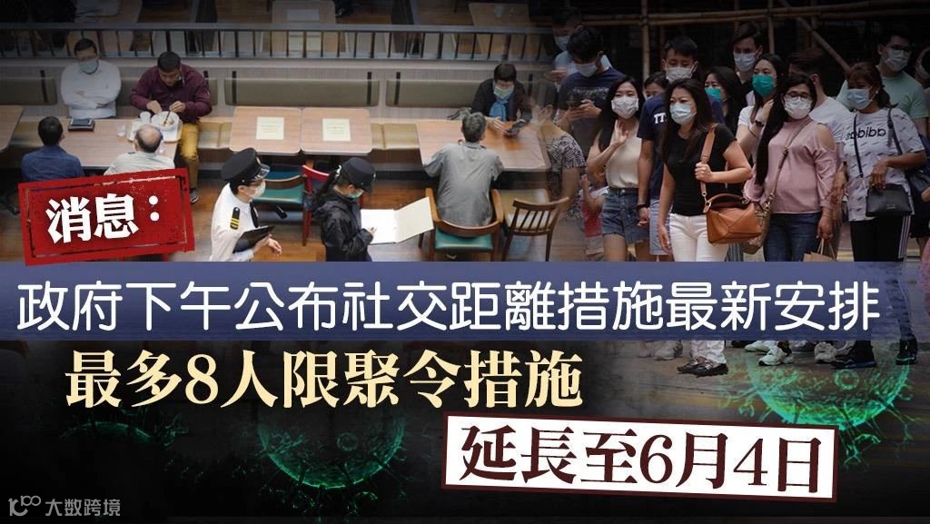 香港特区政府今日宣布,根据新冠肺炎疫情的最新变化,原本将于5月21日执行届满的“限聚令”,继续延长14天至6月4日。