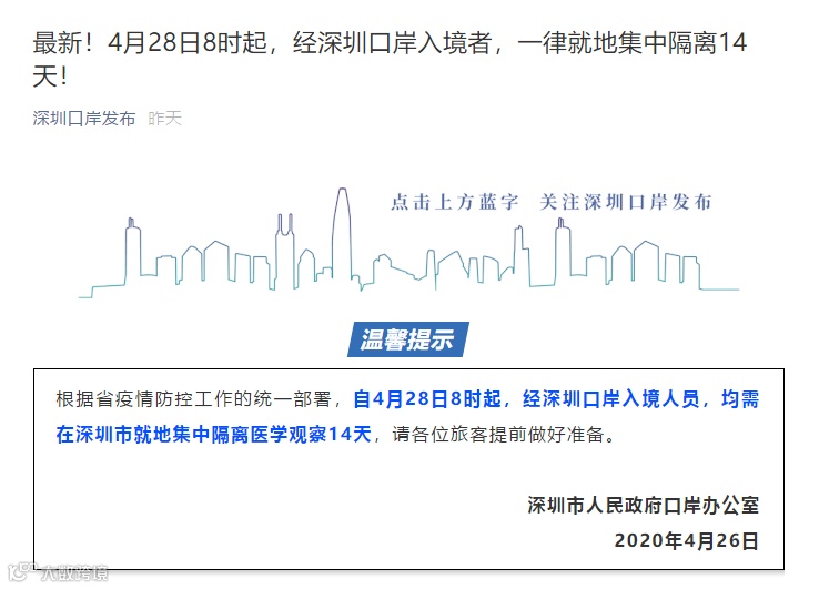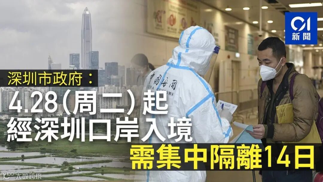 从深圳口岸入境,需要集中隔离14日!