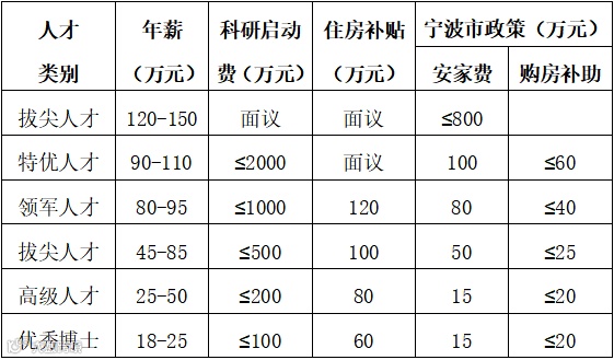 E类:宁波市“泛3315计划”个人及团队带头人、宁波市领军和拔尖人才培养工程第一层次培养人选、海外知名高校、科研机构具有高级职称人才。