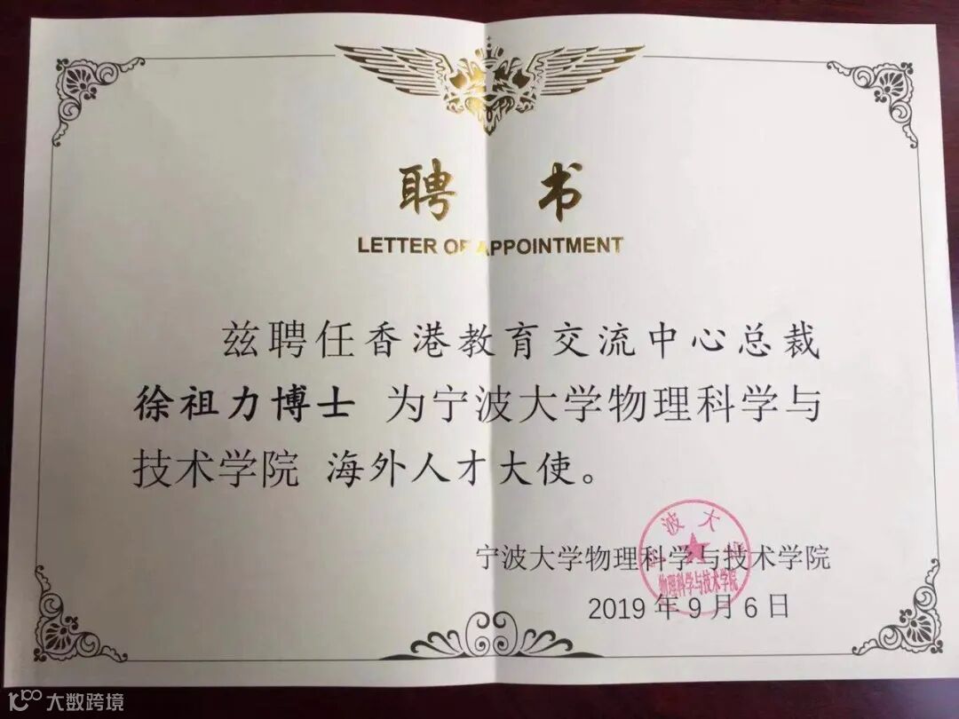 有意申请入职的学者可阅读原文报名,香港教育交流中心总裁徐祖力博士作为宁波大学物理科学与技术学院 海外人才大使,将全方面协助有意参与应聘的高层次人才。