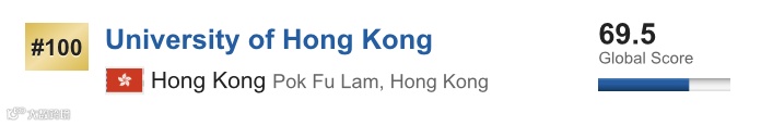 此次排名,共有5所香港的学院进入TOP200。香港大学更是占据TOP100之位(亚洲第8)。