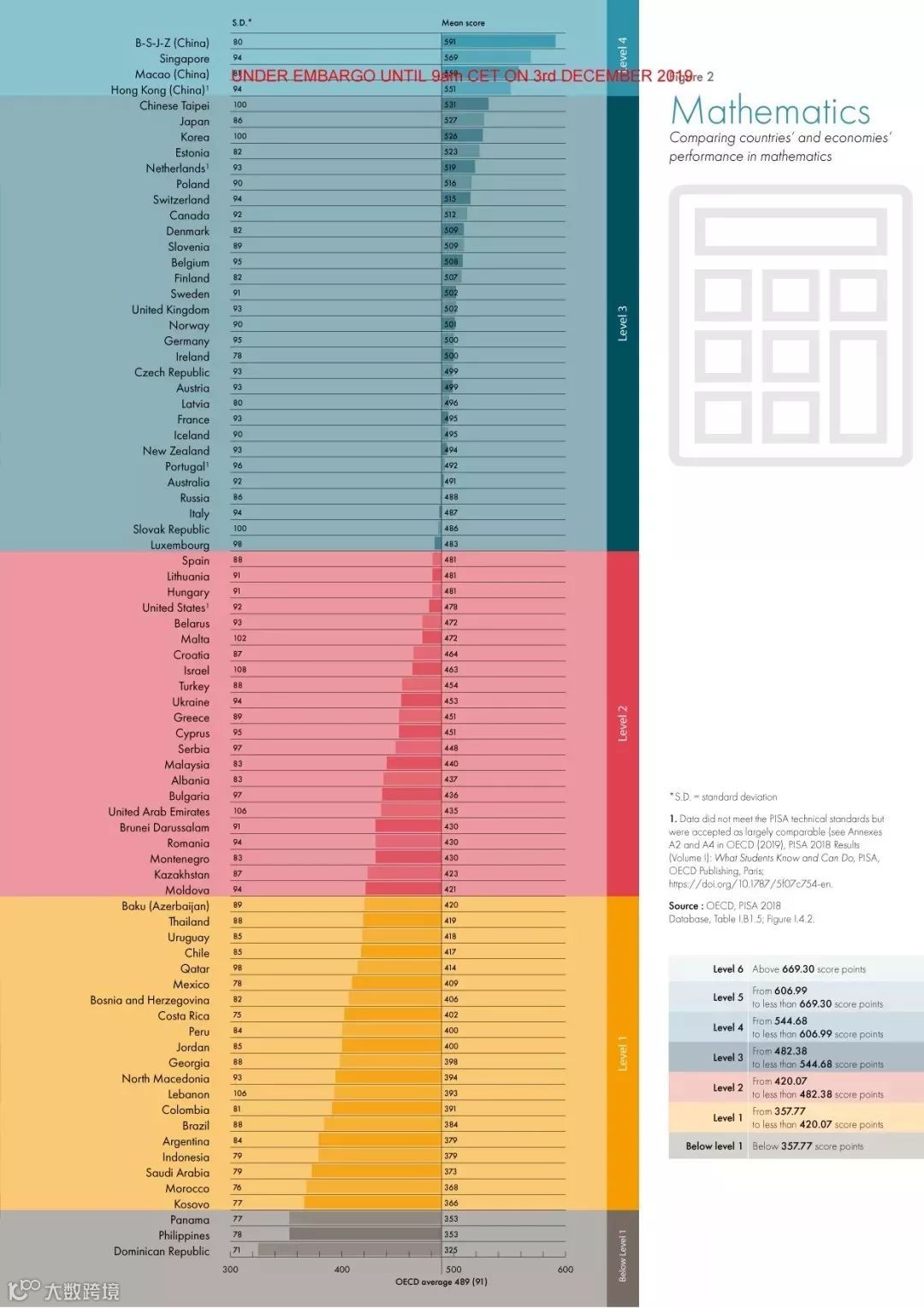 数学素养前三名:中国(北京-上海-江苏-浙江)、新加坡、中国澳门