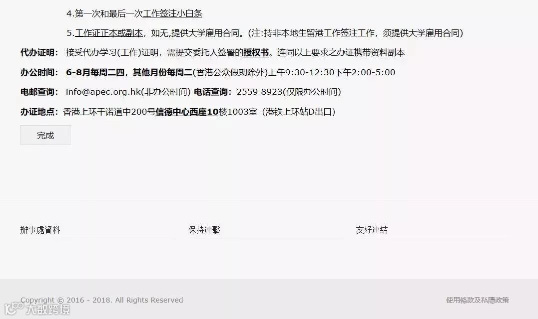 1、如有疑问,可电邮查询:info@apec.org.hk或办公时间电话查询:2559 8923。