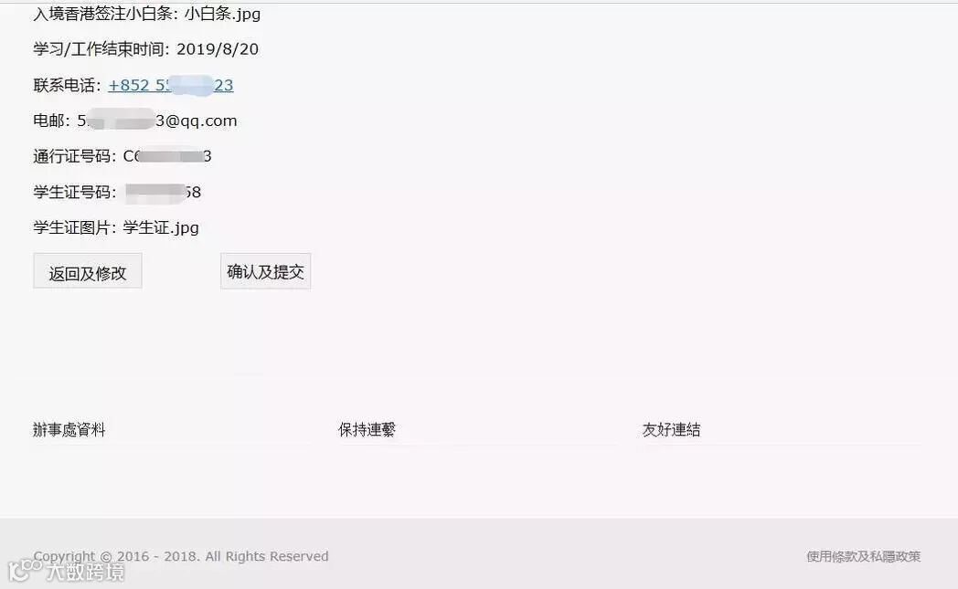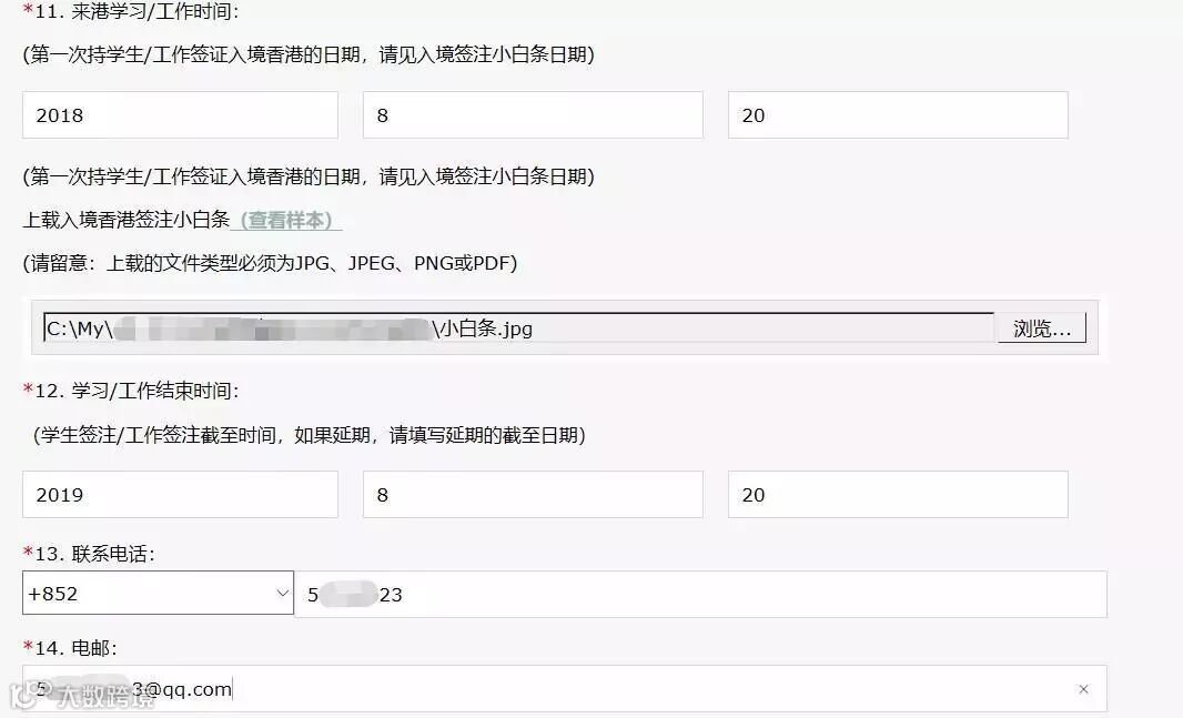 3)第一次和最后一次持学生签注入境香港的小白条(入境签条)。若小白条遗失,需提供成绩单。