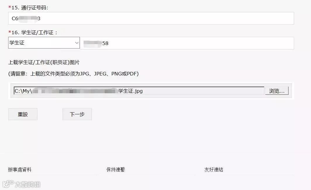 上传入境香港签注小白条:按照要求上传清晰的小白条图片。